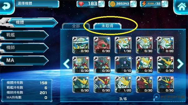 1、在机库里操作时,点按那个“未取得机体”的地方,就能看到所有机体改造满后的攻防资料了。这一步很简单,可以随时进行哦。