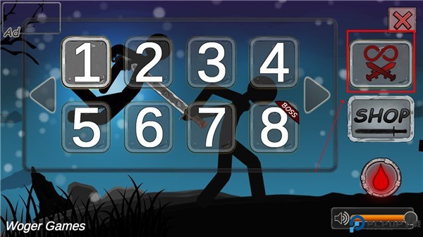 5、在关卡挑战模式中挑战不同的难关,获取积分来解锁不同的火柴人。