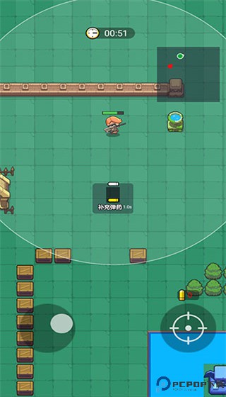 4、我们通过左手滑动怕屏幕来控制角色的行走,右手点击射击按钮来进行攻击,子弹数显示在攻击按钮上方,用完之后需要更换弹夹。