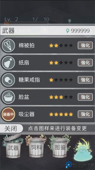 1、玩家需要先放出饲料引诱害虫出现,然后点击屏幕消灭害虫,获得魂力用于兑换武器。