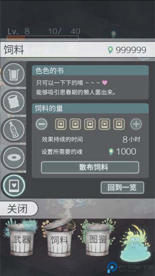 3、不同饲料引出不同害虫,丰富图鉴,前期建议用免费水饲料,节省魂力升级武器。