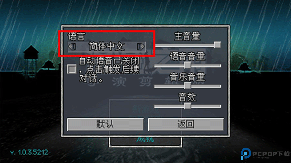 进入涤净之雨导剪版游戏后点击“options”-“language”选择中文即可。