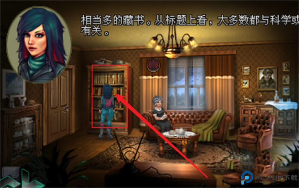 3、随后根据任务提示点击调查左侧书柜搜寻线索。