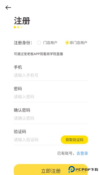 如果是注册的话,还有门店与非门店用户的区别,可按需选择,登录以后就可以正常使用了