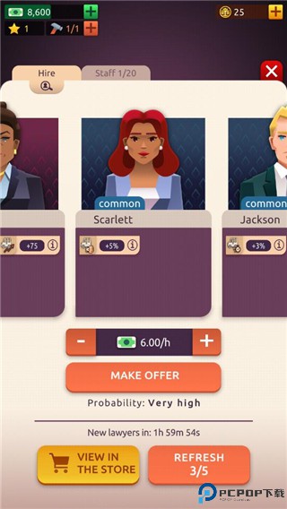 4、经营玩法策略性强,合理规划资金用于招聘、培训、办公设施升级,参与法律界社交活动拓展人脉,提升律所在行业内的知名度与影响力。
