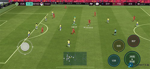 在点球防守中,玩家可以使用摇杆控制门将左右移动,预测对方球员主罚点球时的方向。在对方球员即将主罚点球时,玩家需采用手势滑动屏幕来操控门将扑救方向。