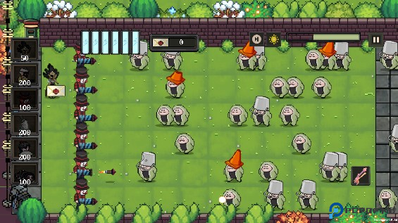 采用像素风格制作,玩法类似于植物大战僵尸,十分简单休闲,能够给玩家带来不同的体验。