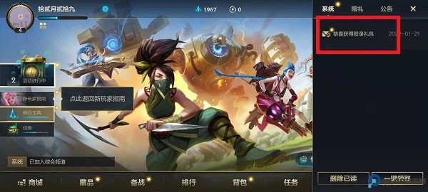 怎么领取1、首先大家进入游戏,完成全部前置任务在大厅界面中,点击右上角的邮件。