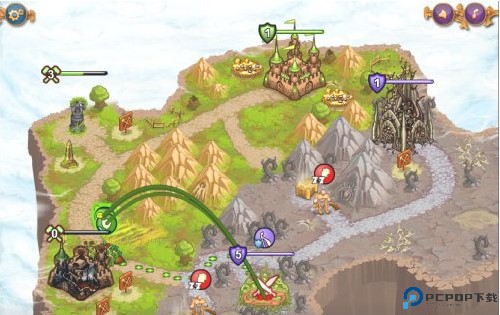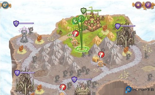 2、城邦争霸手机中文版的屏幕底部的图标允许释放各种技能,玩家需巧妙搭配不同兵种与技能。