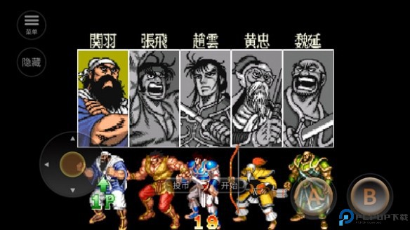 2、听完简短的开场白后,你就可以开始选择角色了,游戏提供了五位角色供你选择,包括关羽、张飞、赵云、黄忠和魏延。