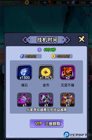 1、魂石产出取决于挂机时长与角色等级,VIP奖励也可显著提高收益。