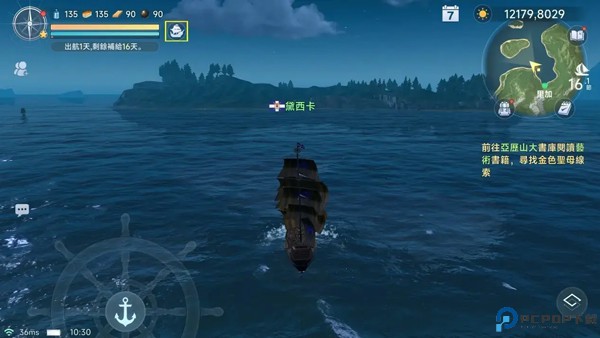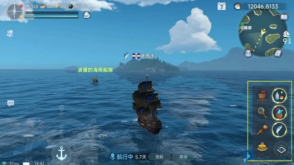 出海后,点击左下角船舵中的船锚按钮即可启航,再次点击即可停下。