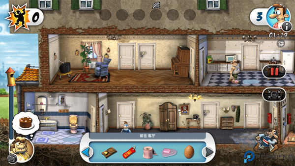 1、首先进入整蛊邻居地狱归来手机版游戏,我们需要先收集好整蛊道具。在五斗柜拿到“放屁坐垫”;在卫生间的医药箱拿到“强力胶”;在厨房冰箱拿到“鸡蛋”。