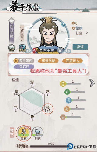 8、机缘工具人一个,挂秘境!挂秘境!挂秘境!(很重要,关乎你的法器材料来源)一般就是六边形战士中挑一个,但还是有可能会有逆天的工具人来的,所以挑弟子的时候不仅看词条还要看六边形中的机缘。