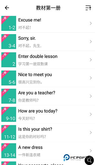 5、选定教材后点击具体课程名称(如第一册"Excuse me!")即可进入学习界面。
