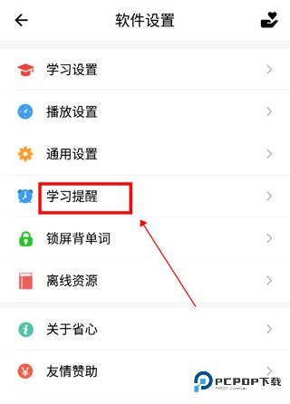 2、启用学习提醒功能:在设置菜单选择"学习提醒"服务入口