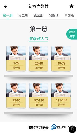 1、视频课程:配备官方制作的教学视频,包含《新概念英语》等经典教材全册内容的配套有声讲解课程。