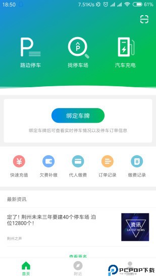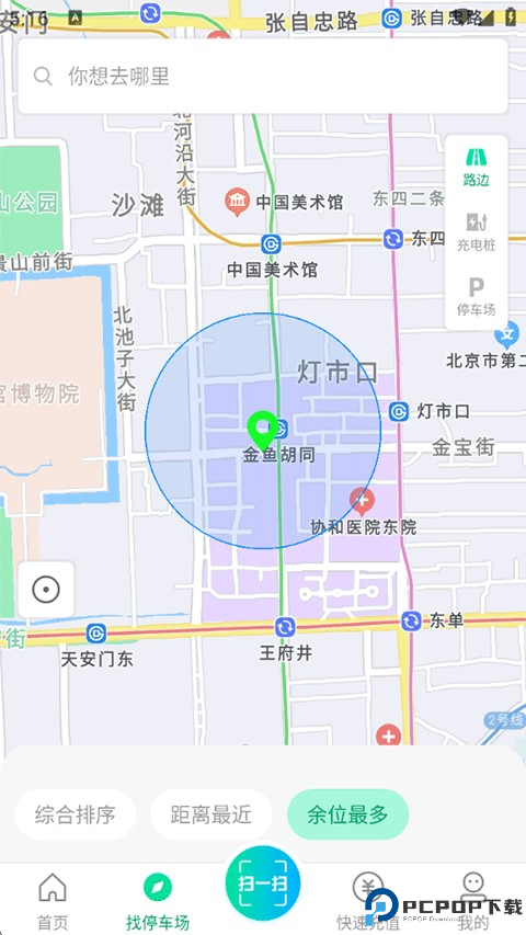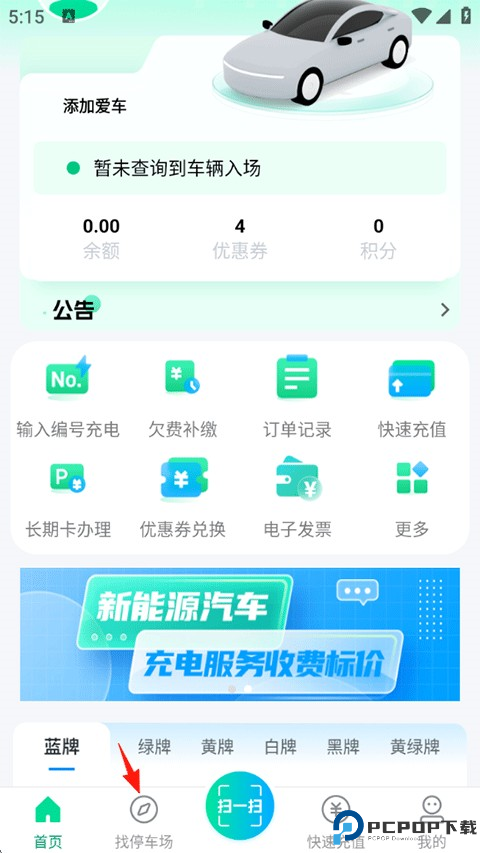 2、在主界面底部导航栏,点击找停车场选项,切换至停车场查找功能页面。