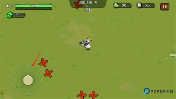 1、操作摇杆移动角色以躲避障碍与敌人。