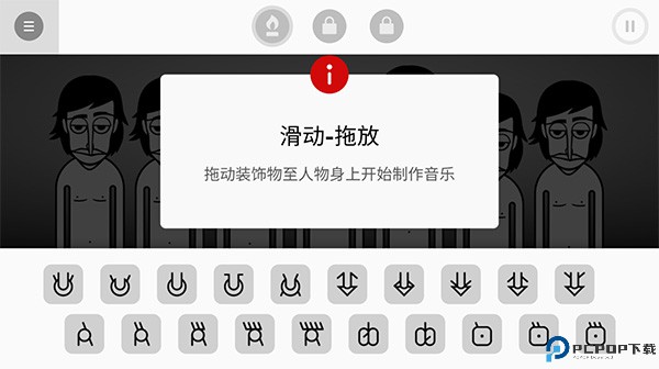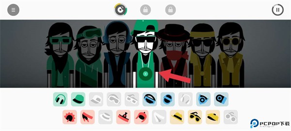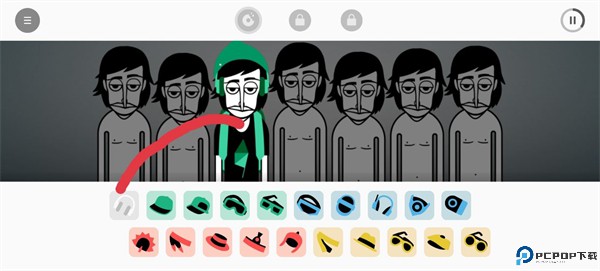4、拖动装饰物至人物身上开始制作音乐,接着人物便会混合出节奏感超强的各种音乐。