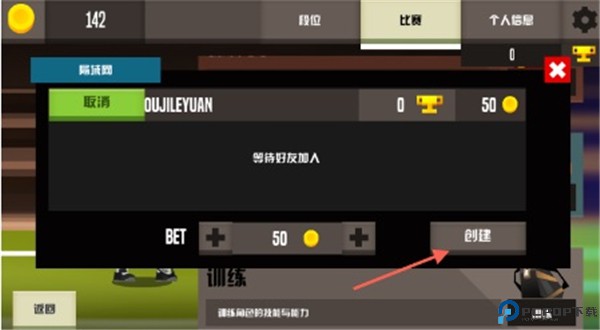 3、进入之后,需要下注金币,然后点击创建房间等好友加入即可。