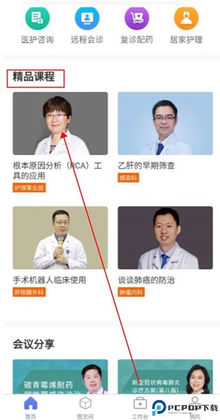 2、首页中的搜索框可以搜索医生和相关病例课程
