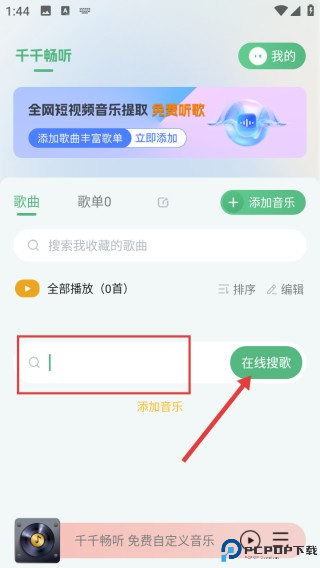1、在千千畅听主界面搜索框输入歌曲名,点击【在线搜歌】。