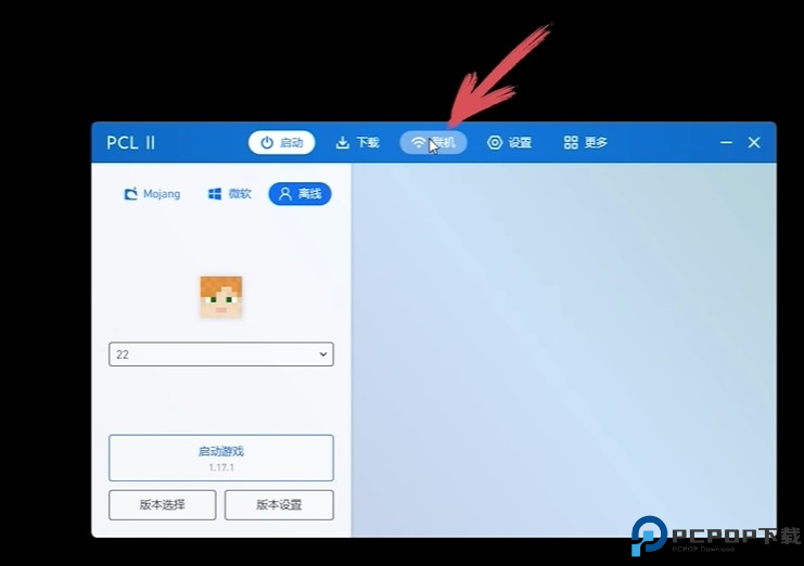 首先你要把PCL更新到最新版,再点击上方中间的联机按钮