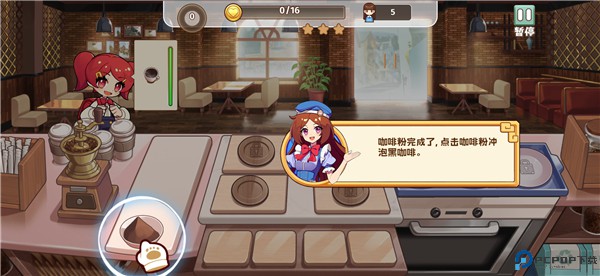 3、将磨好的咖啡进行冲泡,后面可以解锁牛奶等,加入咖啡中。