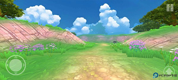 2、开始你会来到一个没什么人的草地上,左下角按键可以控制自己移动,右下角是跳跃,滑动右侧屏幕就可以调整视角方向,查看周边环境。