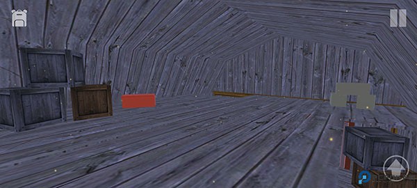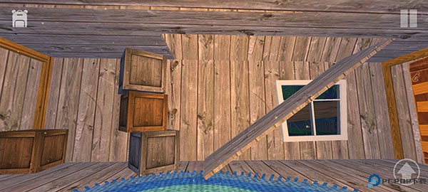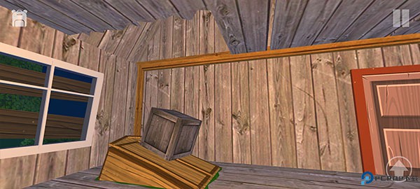 7、开始探索房间,发现楼顶的木板是碎的,可以利用背后的木箱子爬上去。
