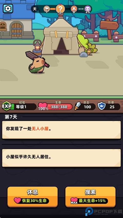 卡皮巴拉GO是一款放置类文字冒险游戏,玩家将扮演一位可爱的卡皮巴拉勇者,在日复一日的旅程中展开一场精彩纷呈的冒险旅途,旅途中玩家每一日都将随即遭遇各项事件,从不期而遇到险路恶敌应有尽有,高随机性的Roguelike元素让玩家每一次冒险都充满机遇与挑战。同时,卡皮巴拉GO为玩家扮演的卡皮巴拉提供了丰富的武器装备与增益属性,每次冒险中玩家获取的装备与BUFF都将随机刷新,不同BUFF与装备之间结合可构筑出强大的战斗流派,助力玩家在冒险旅途中无往不利。对冒险类游戏感兴趣的玩家千万不要错过,快快下载游戏体验吧!