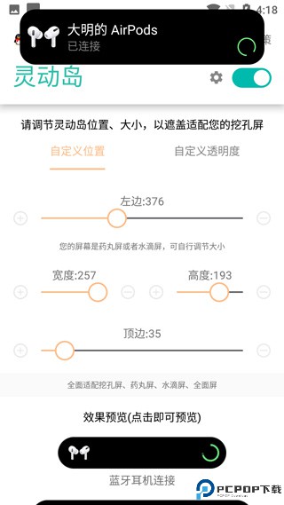 4、完成设置之后,点击确定就可以在安装手机上实现“灵动岛”功能了