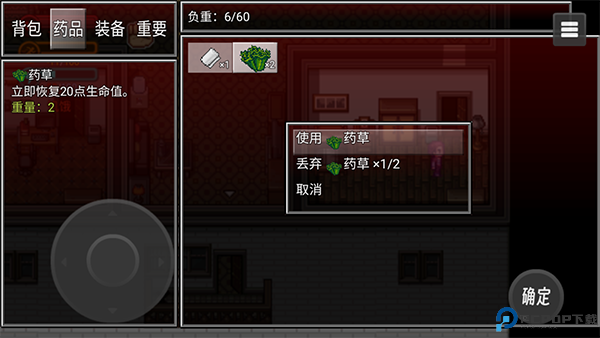 8、在游戏中有些物品靠近后点击确定键可以采集,就比如:图中的药草等。
