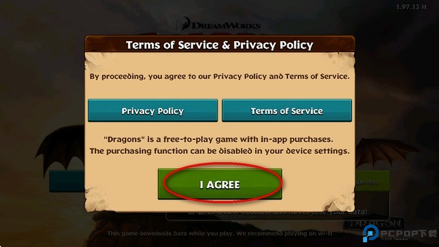 1、在本站下载安装好驯龙高手博克岛的崛起游戏,第一次进入同意用户协议。
