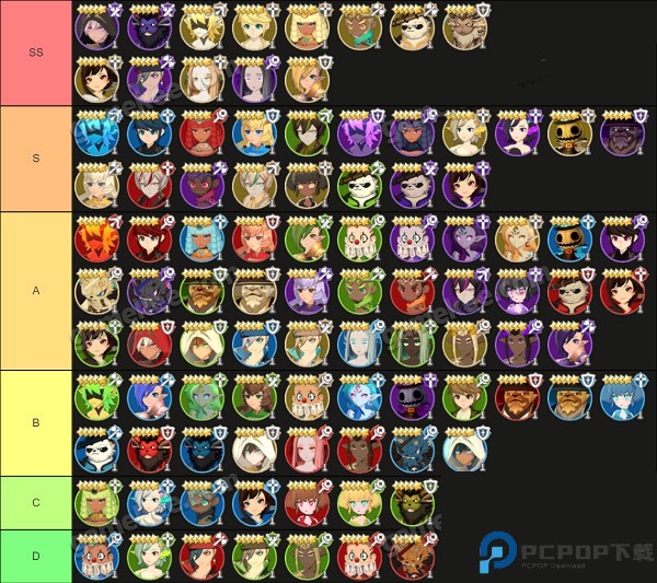 1、强度榜分为了SS、S、A、B、C、D六个阶段,包含了目前版本中所有的角色。