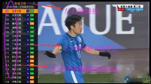 1、换台:进入HDP直播获取节目单更新后,会自动开始播放第一个频道,点击遥控器上下键(“上”是下一个频道,“下”是上一个频道)即可实现换台,如果觉得不习惯的话,也可进入“菜单设置”里面设置反转过来。