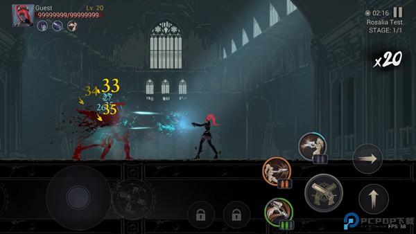 3、选择好角色后,等待一会加载,进入游戏后如图,左边控制移动,右边控制攻击、技能、跳跃等功能;