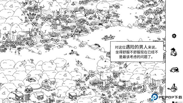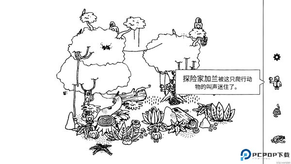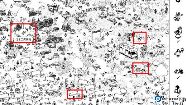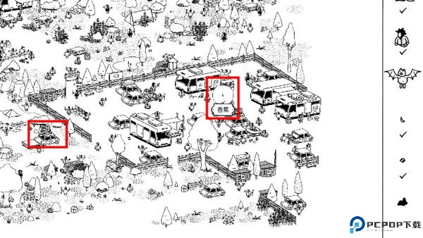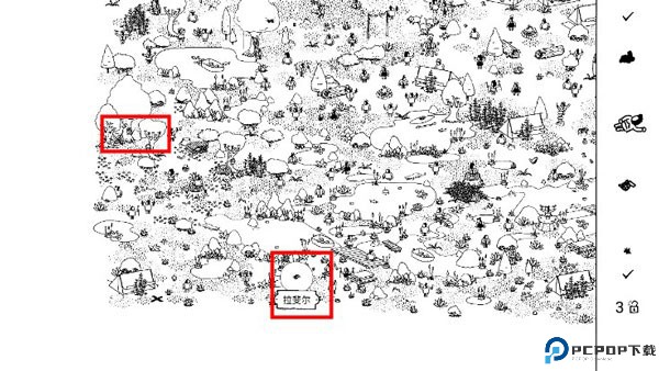 2、有时需要寻找的事物未比会直接显示在屏幕中,玩家要通过拨动帐篷、劈砍树丛、开关大门、触碰一些小动物等才能发现