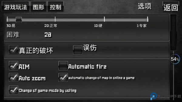 在“游戏玩法”会有个“Automatic fire”即为自动开火,把这个选项的√去掉,如上图。