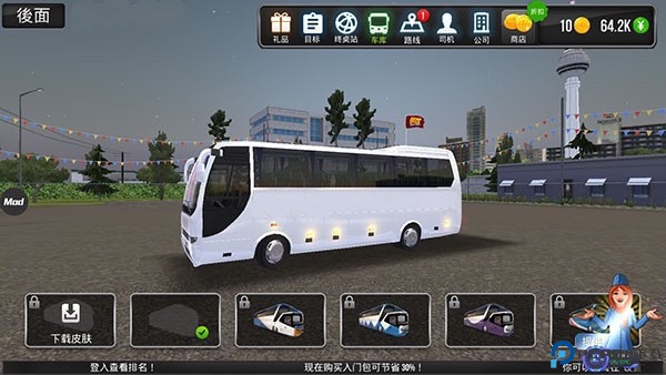 1、同样打开并进入城市公交模拟器手机版游戏,选择皮肤功能;