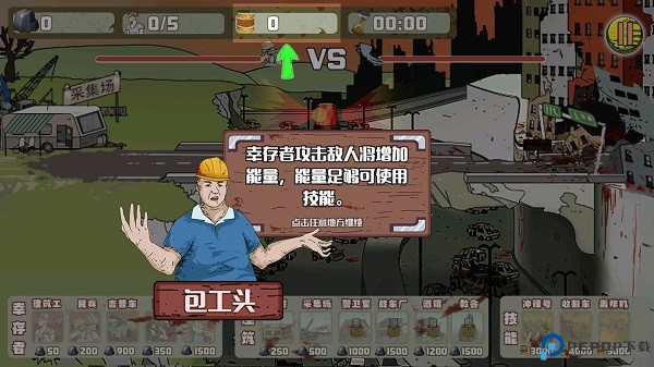 5、幸存者攻击敌人将增加能量,能量足够可使用技能。