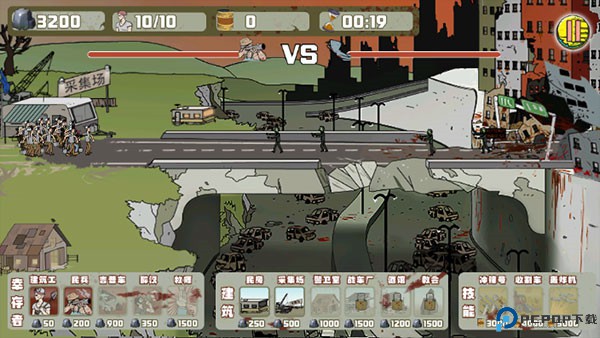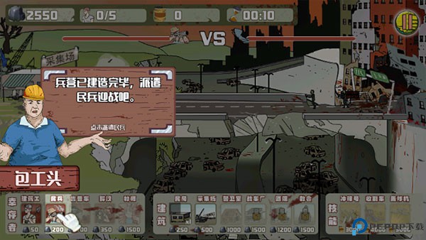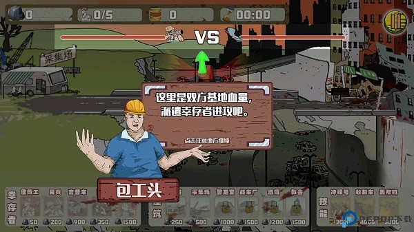 在下面中分别显示的是双方基地血量,派遣幸存者开始进攻吧。