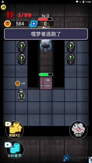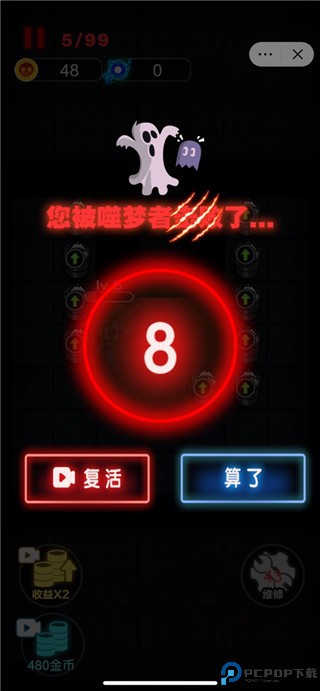 7、而当你的大门及武器都被猛鬼攻破时,既算游戏失败,然后直接点击三倍奖励即可;