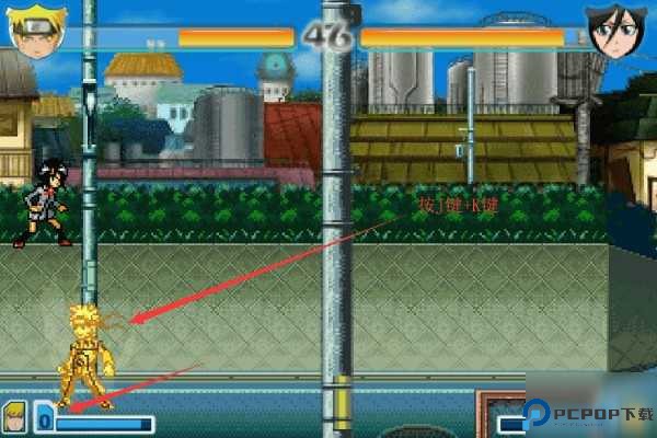 4、能量满3格后,同时按J键和K键,即可变身成为金色鸣人。