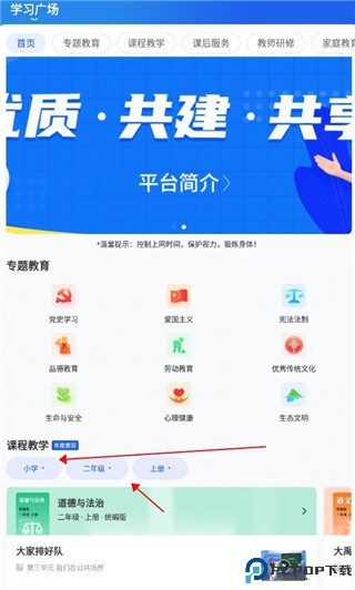 5、在这里大家选择年级和上学期和下学期;