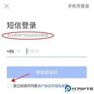 3、然后大家在这里直接输入手机号同意协议后,自动注册登录;