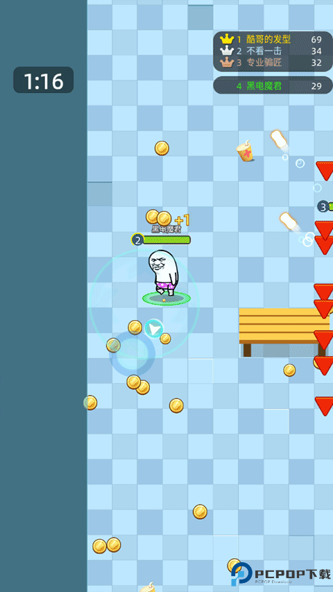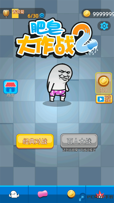肥皂大作战2单机版每个玩家初始拥有100点血量,被不同种类的肥皂击中会扣除相应血量。最终存活到最后的玩家将成为全场唯一的胜利者。游戏配有魔性背景音乐,伴随节奏展现个人风采。操作简单易学,让玩家快速掌握战斗技巧。每局有十多名玩家同场竞技,血条耗尽即淘汰。