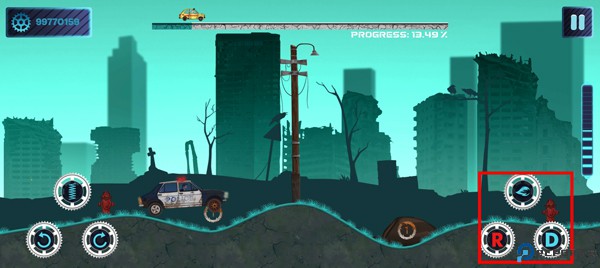 3、右边的按钮分别是加速,r是倒挡,d是前进档位,都是用来控制车辆行驶的;