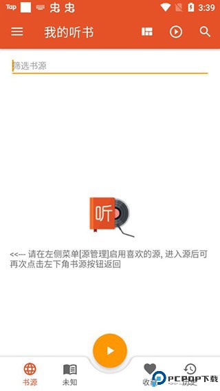 1、在本站下载安装并打开软件,初次进入,书源这里一片空白,需要手动添加一下;